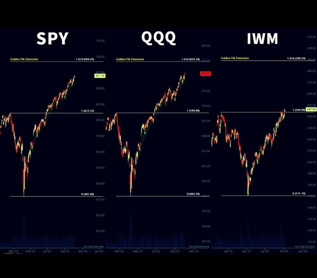 Este fenómeno se llama divergencia inter-mercado. Mientras los “generales” del ejército (las grandes empresas de SPY y QQQ) están conquistando nuevos territorios, los “soldados de a pie” (las pequeñas empresas de IWM) se están quedando atrás, luchando en la misma trinchera.
